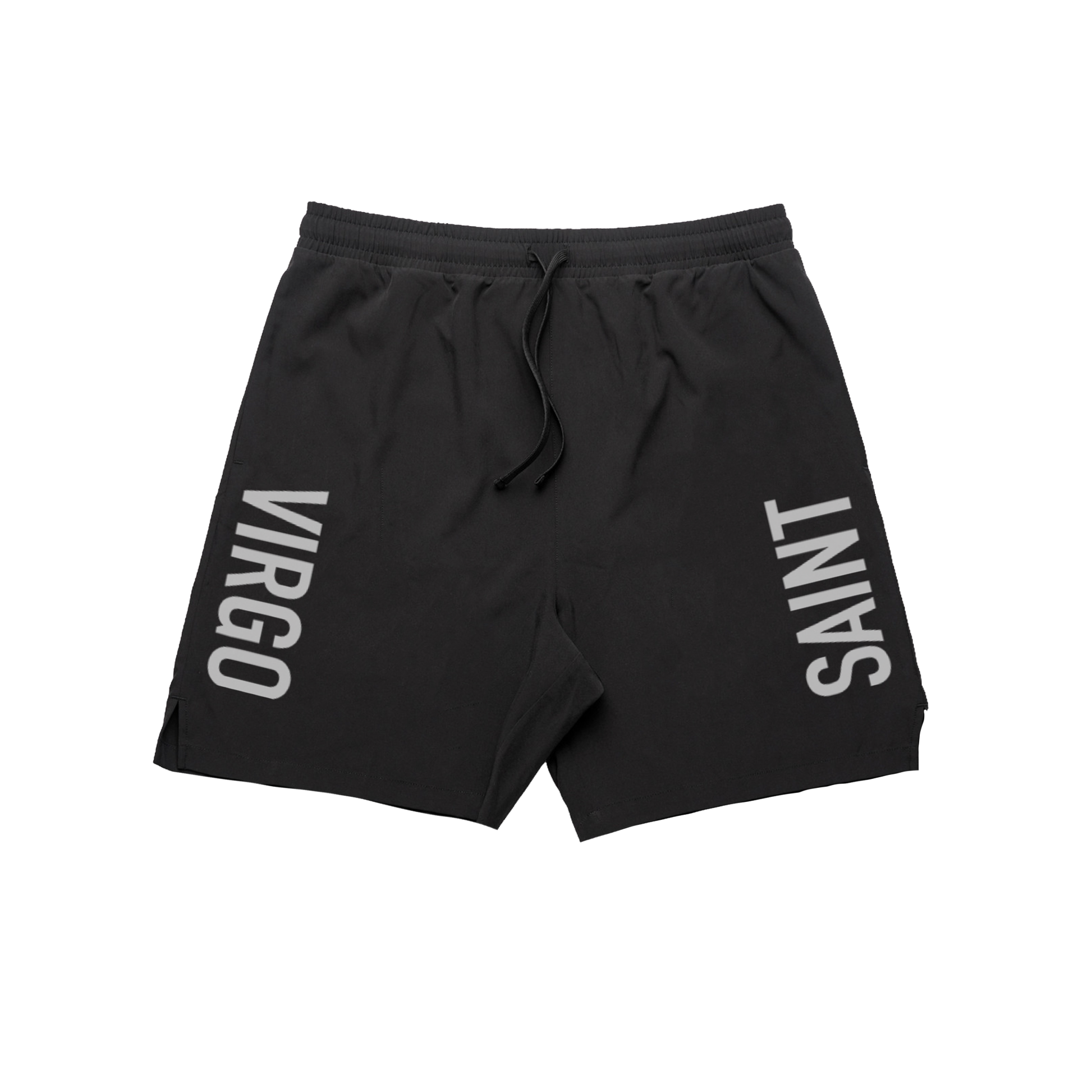 Saint Virgo Split Logo Training Shorts in Black are constructed from a Light weight, 125 GSM, 93% recycled polyester 7% spandex blend.