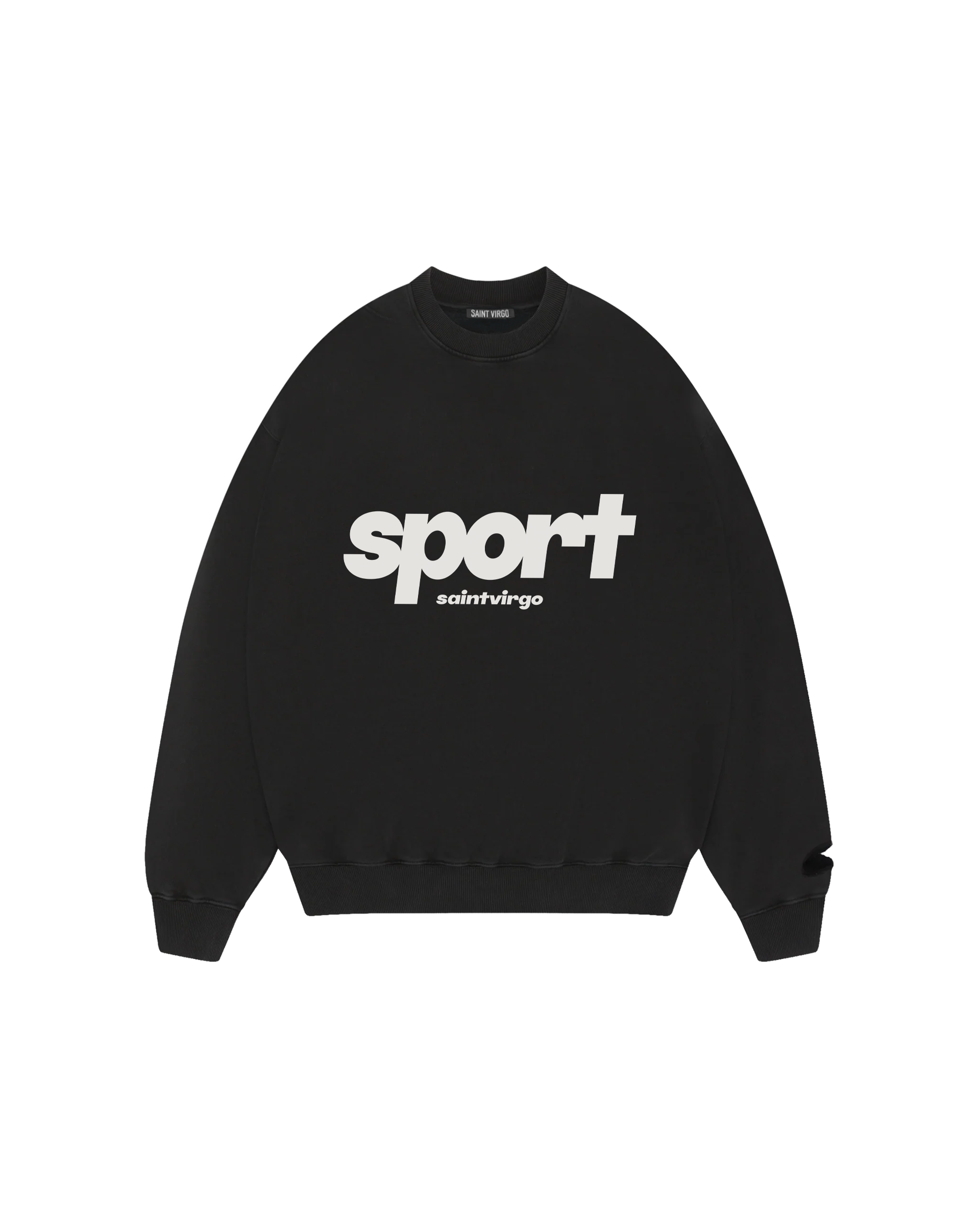 Featuring a striking oversized “sport” graphic across the chest with a subtle Saint Virgo logotype beneath, this piece blends vintage sportswear energy with modern minimalism.